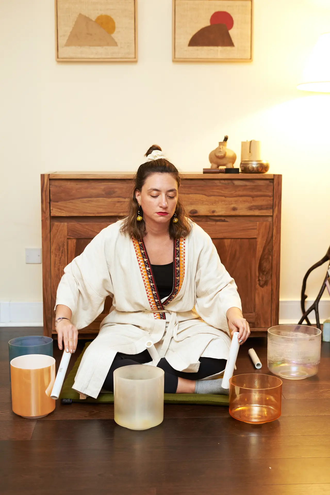 Today, my sound healing practice forms an integral part of my broader curatorial and anthropological work as well as my spiritual journey. As a curator and Anthropology of Food researcher, I investigate the thresholds between food, conviviality, ritual, and belonging – considering how sound, like food, operates as a medium of care, transmission, and spiritual communion. Over the past two years, my exploration of sound as a healing mechanism has created immersive sonic environments that bridge body and cosmos, intuition and intellect, matter and energy. Intuitively guided, I approach sound as both an archaeology of vibration and an alchemy of transformation, emphasising my lifelong curatorial ethos: to create spaces where art, sound, and food can heal, connect, and reveal the unseen.