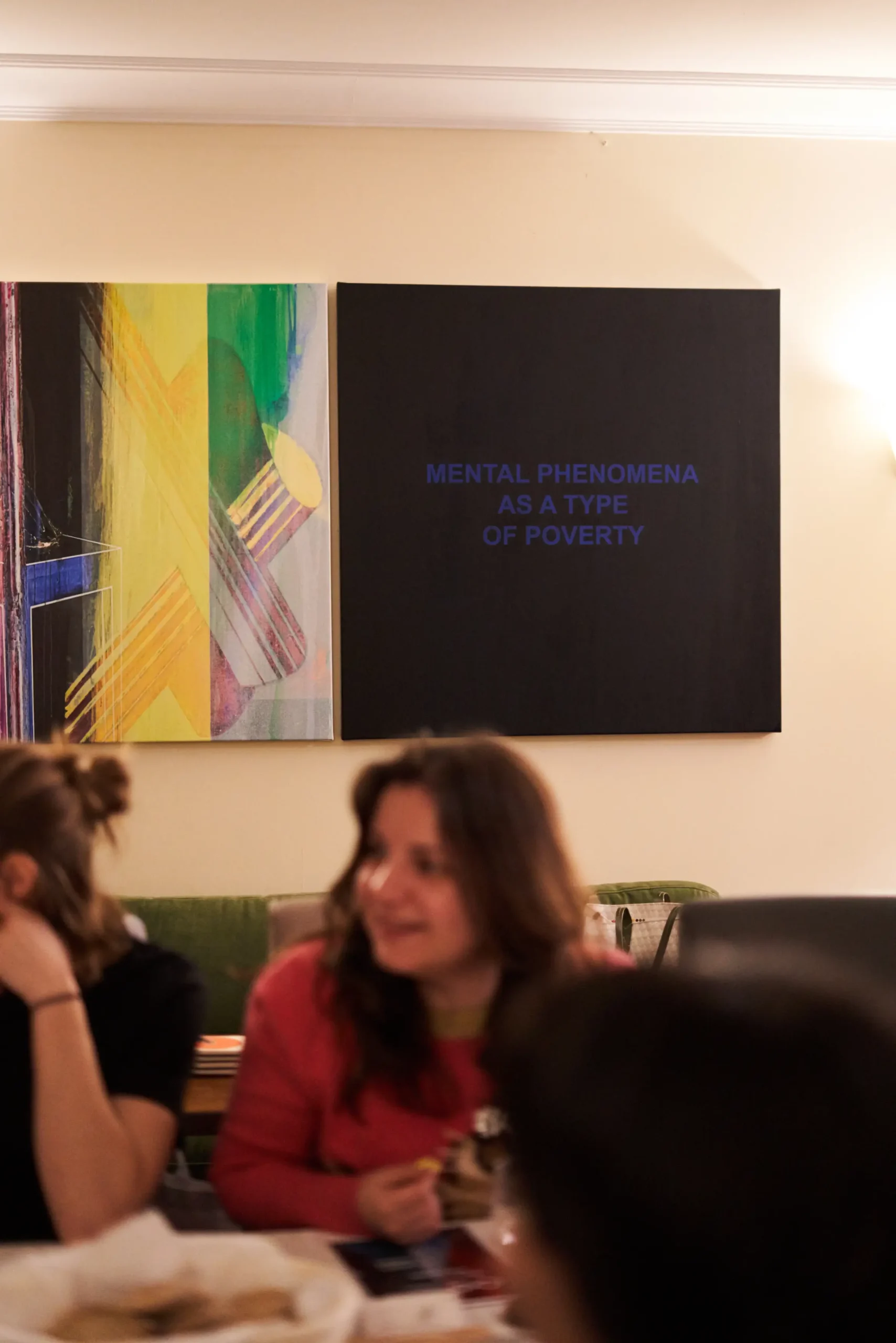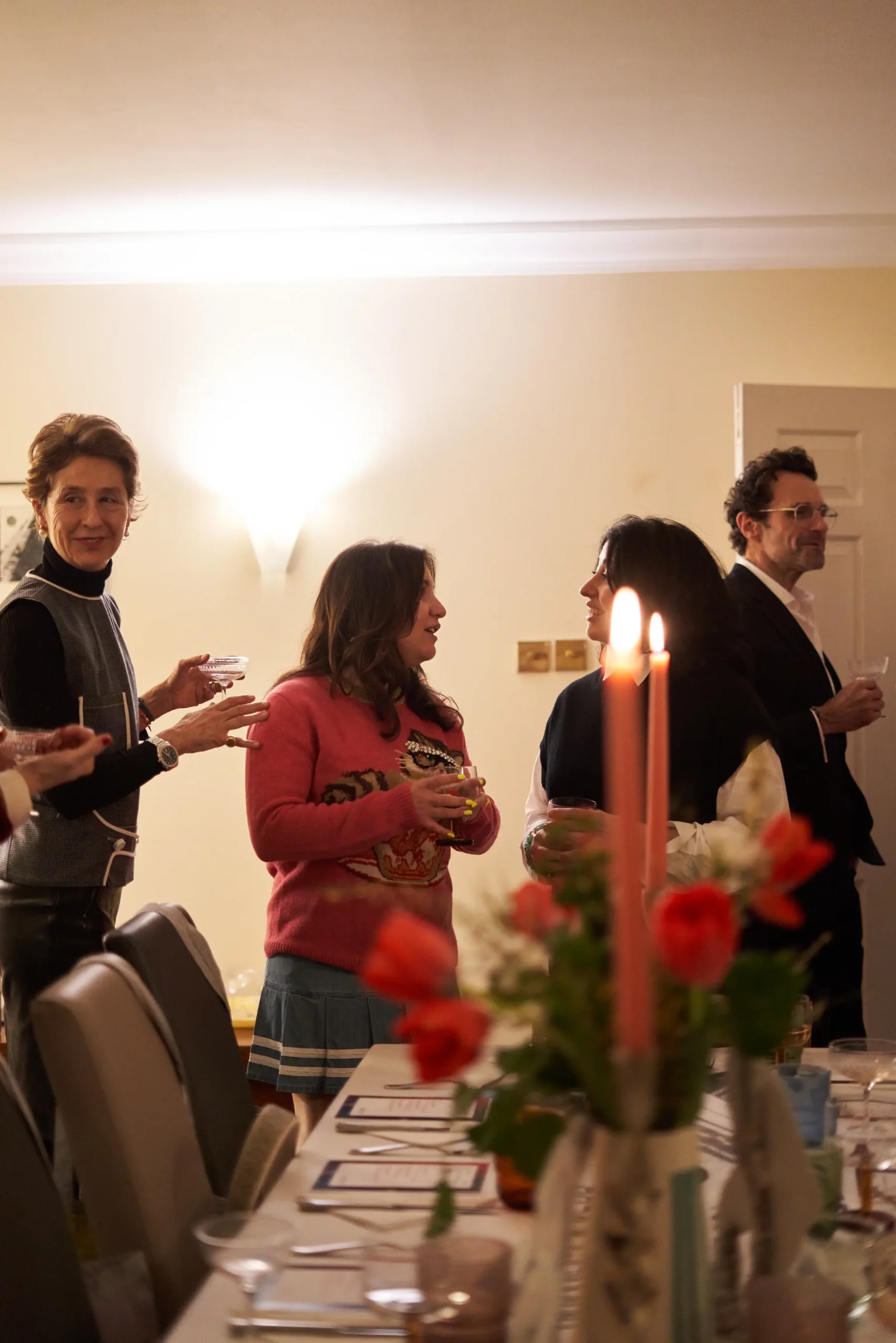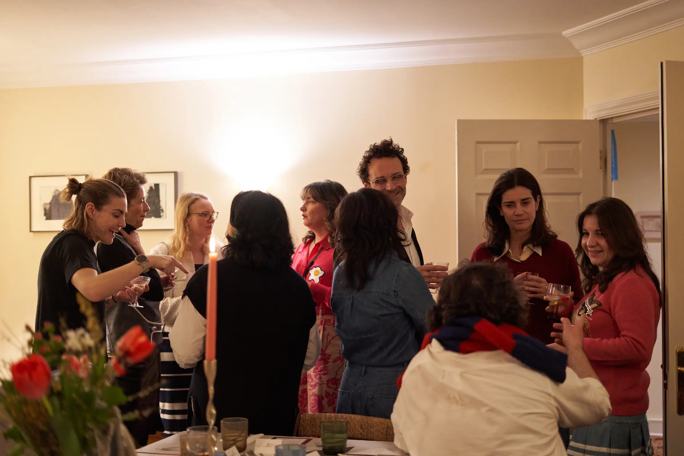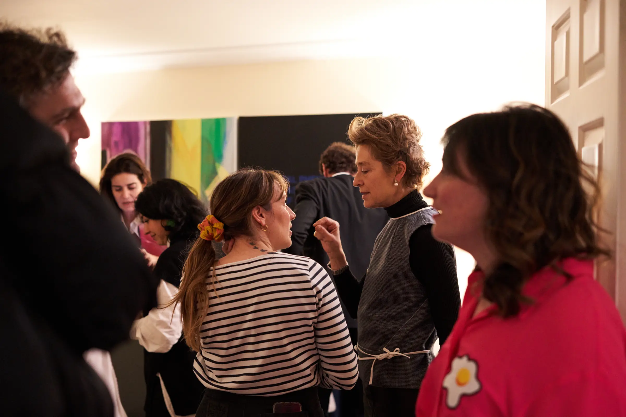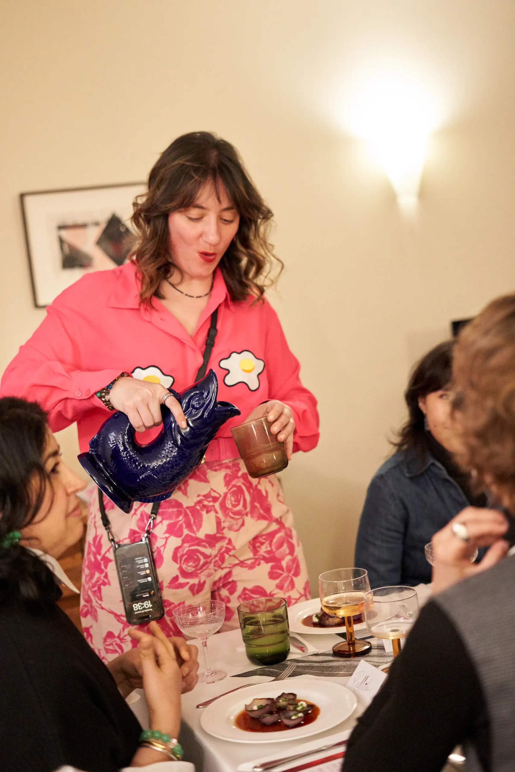 Guests were also invited to take part beyond the meal. Bespoke painted tote bags, created for the occasion, extended the artists’ practices into a functional, portable object, while a collective action at the table gently activated participation, exchange, and shared attention. The evening moved fluidly between installation, conversation, and conviviality, holding the table as both artwork and gathering.