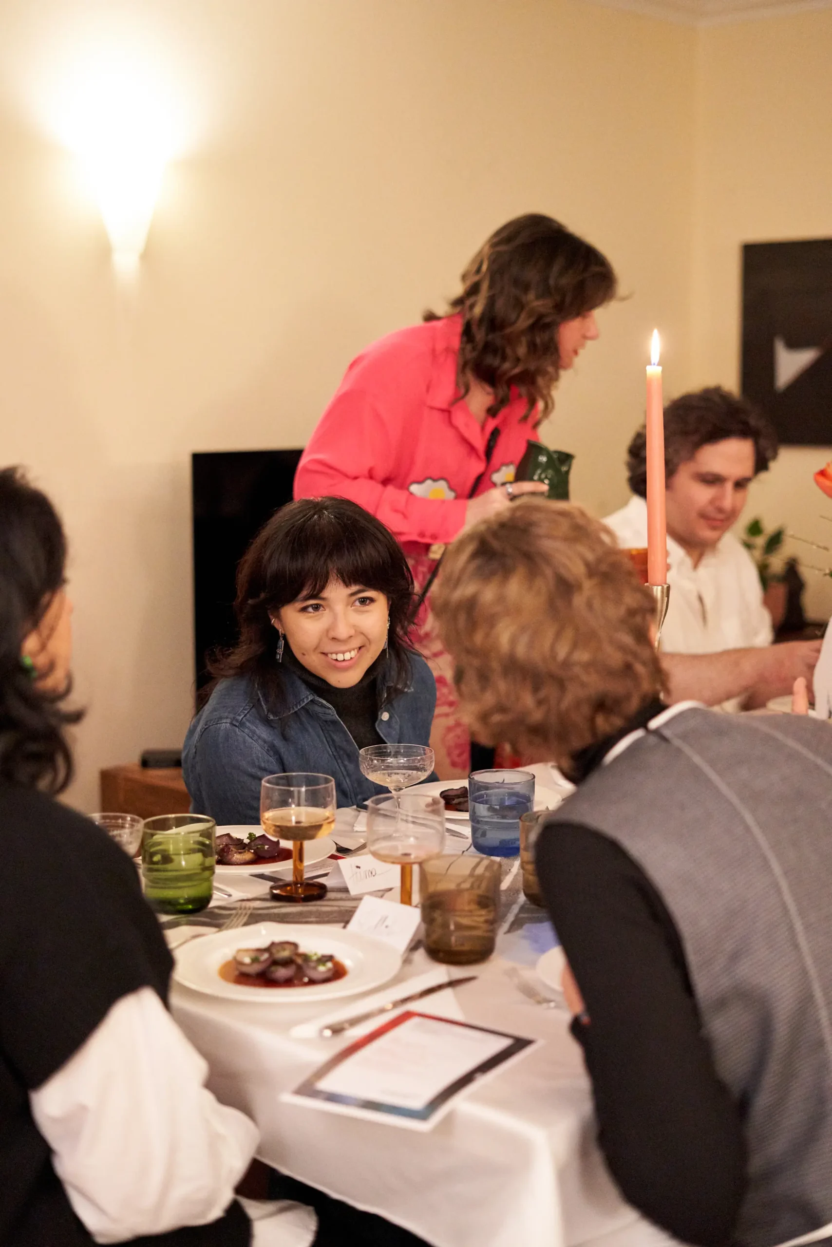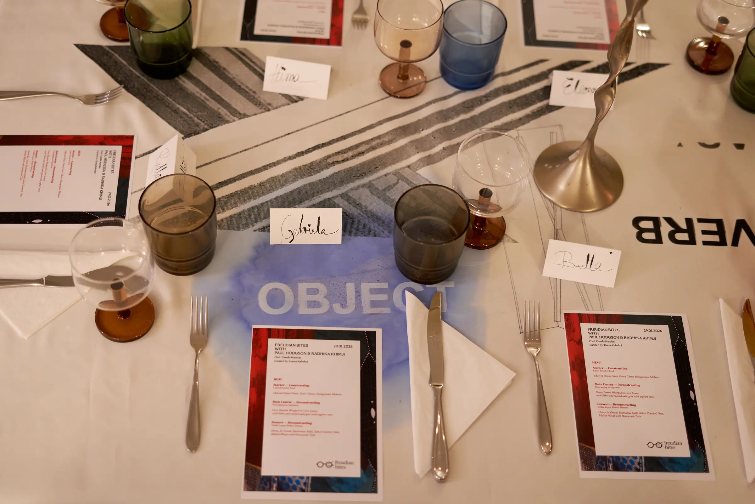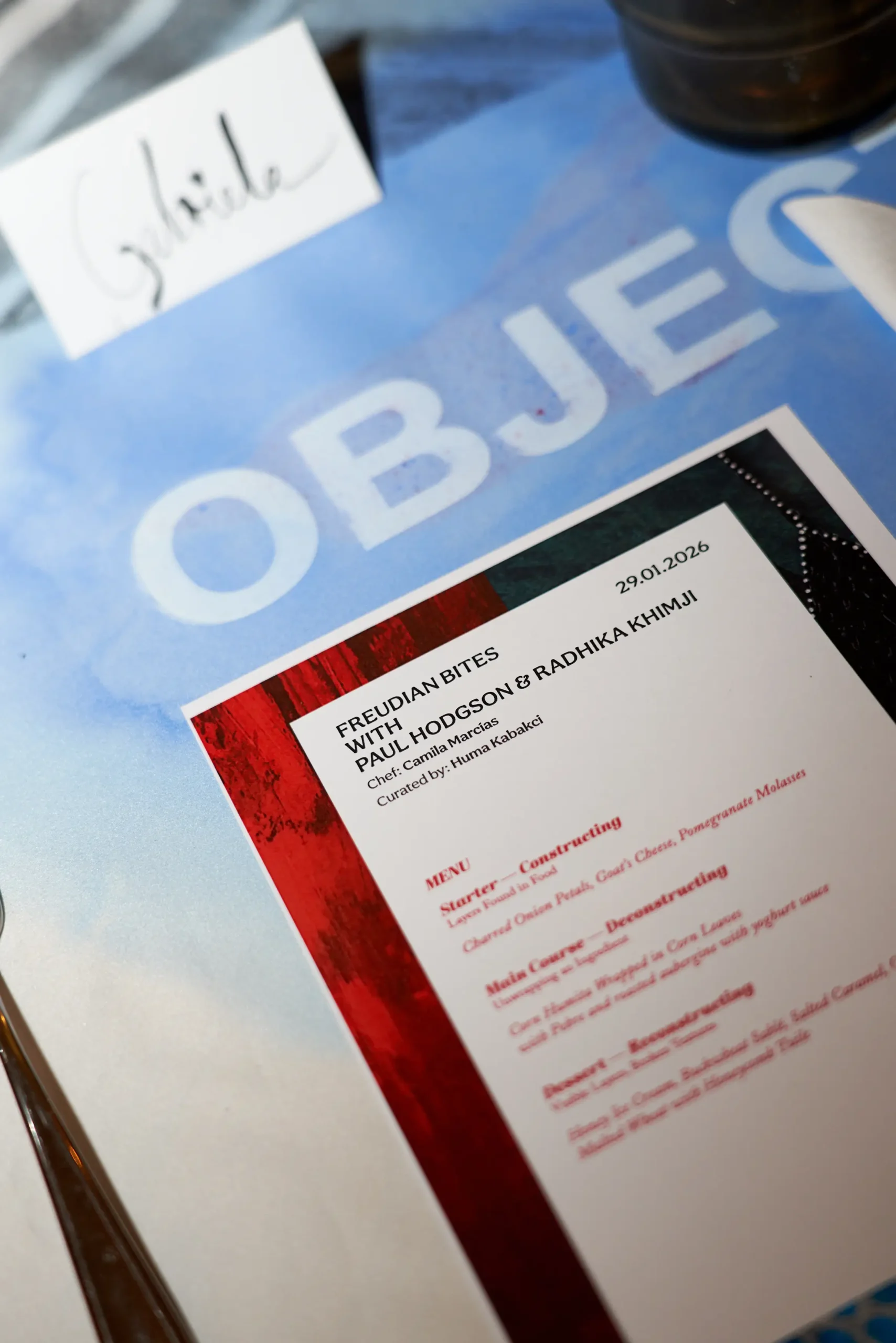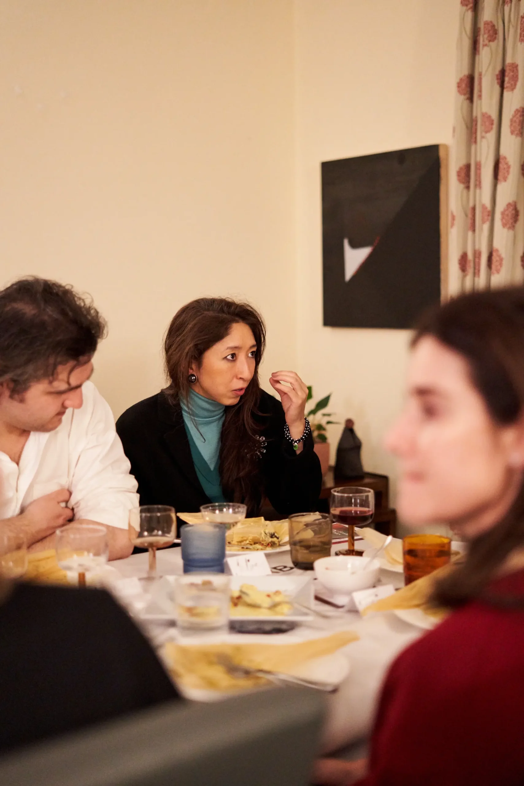 For the first time at the Freudian Bites table, two artists came into dialogue alongside a chef. This January edition brought together artists Radhika Khimji and Paul Hodgson with chef Camila Marcías for an intimate evening shaped by artistic process, material experimentation, and the rituals of making and sharing food.